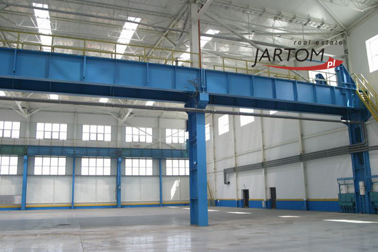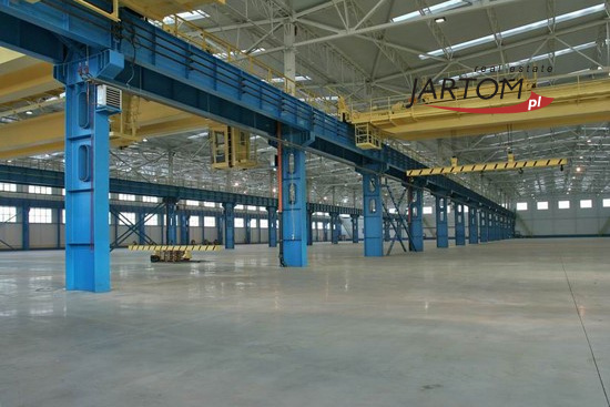 - Hala na wynajem. Łącznie 15 000 mkw. z możliwością podziału po 5000 mkw. Trzynawowa hala o wymiarach 168 m x 90 m Wysokość 12 m. Hala ogrzewana. Posadzka bezpyłowa 8T/mkw. Dostęp do hali z poziomu "0" oraz poprzez doki. Możliwość montażu suwnic o udźwigu do 30T.